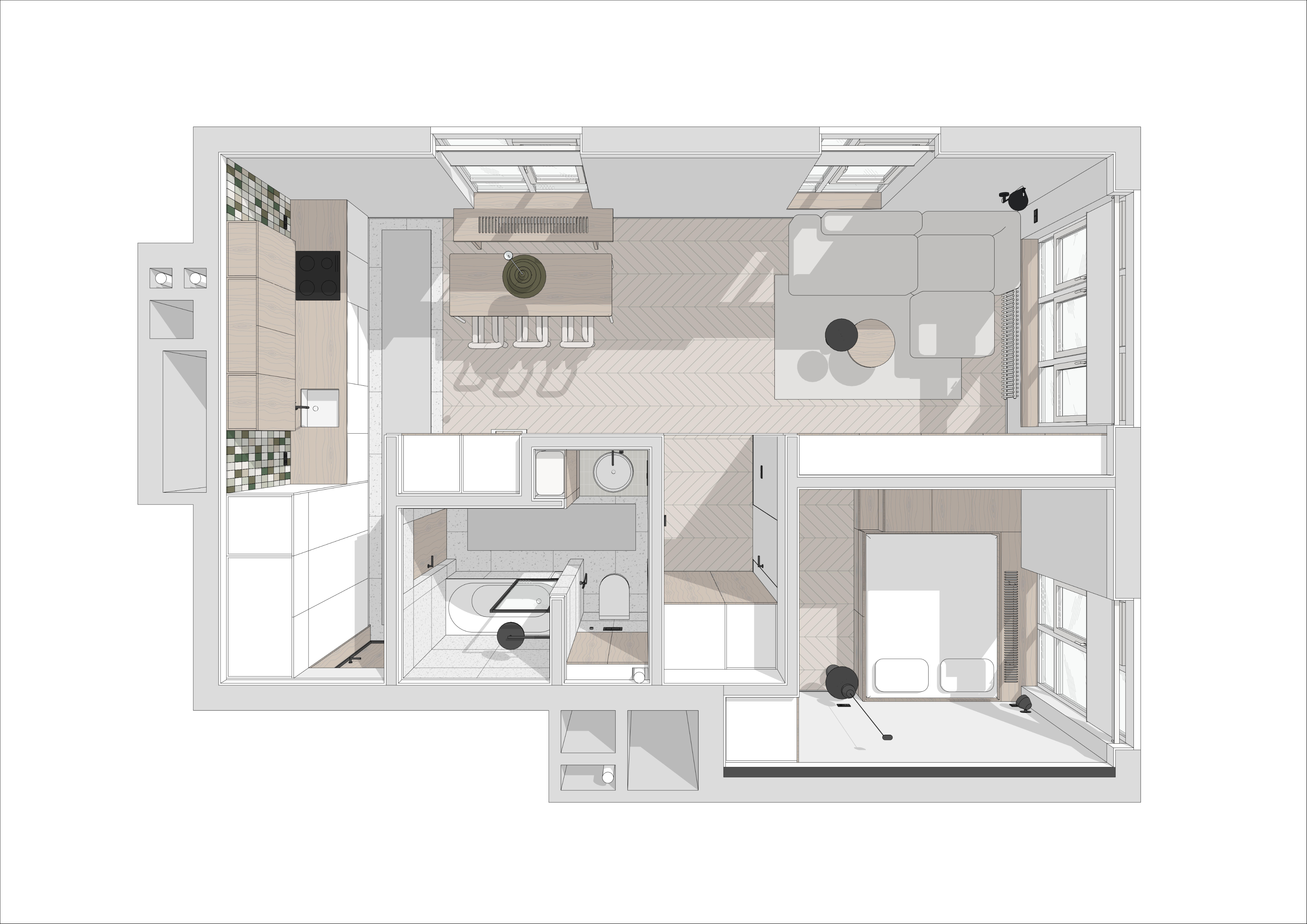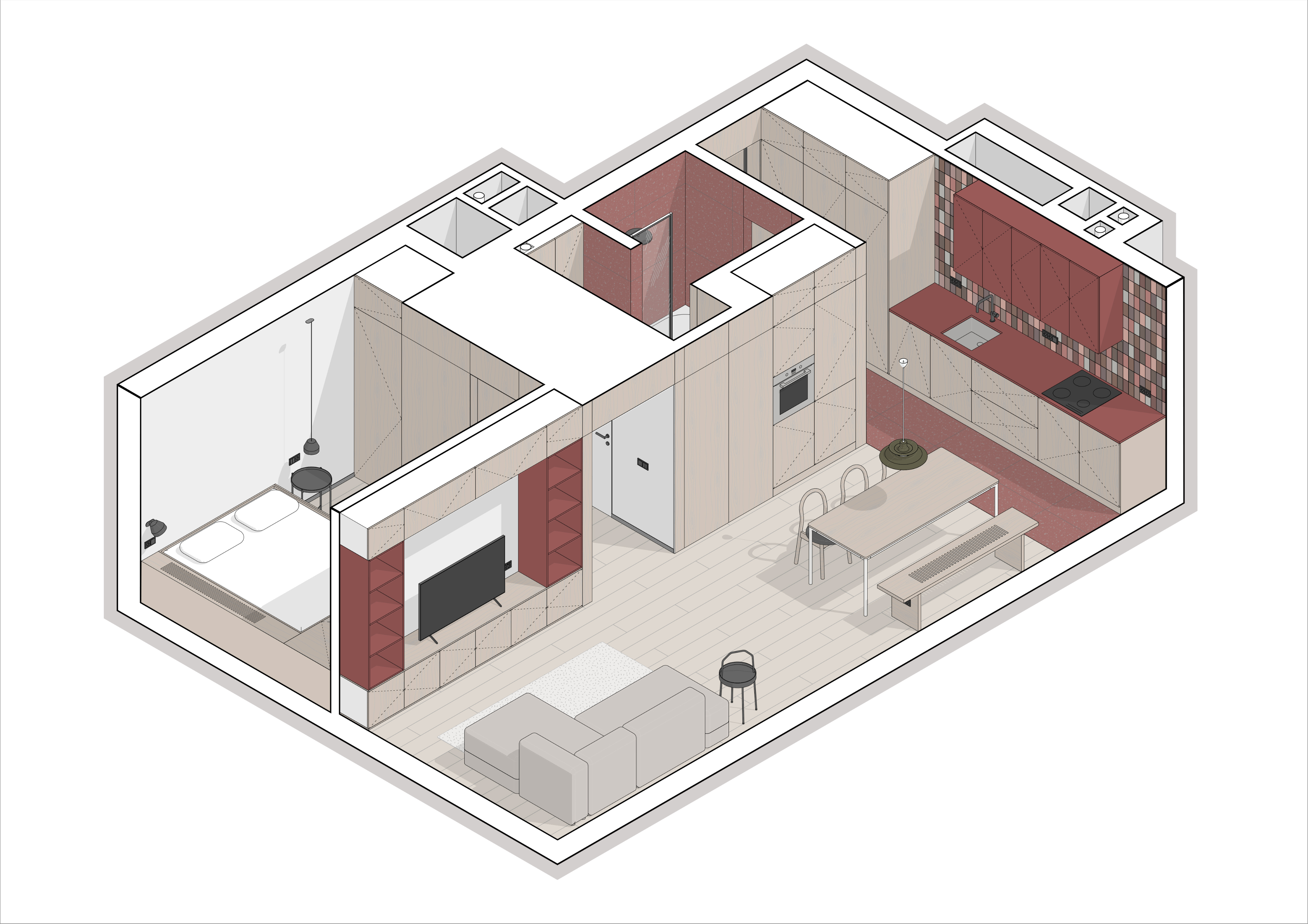 відмовилась від візуалізацій і презентує проєкт за допомогою схем з Revit + колажів