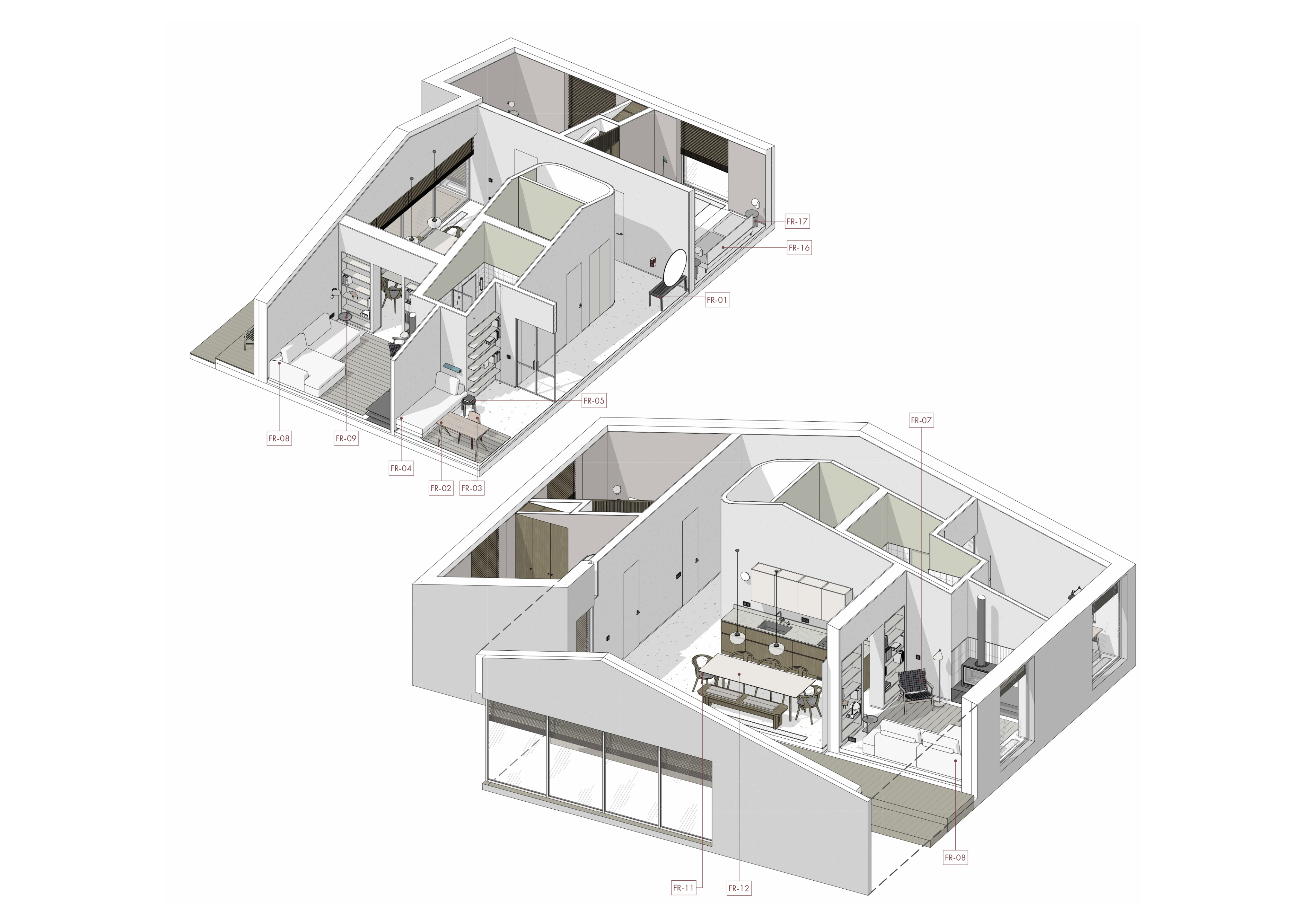 відмовилась від візуалізацій і презентує проєкт за допомогою схем з Revit + колажів