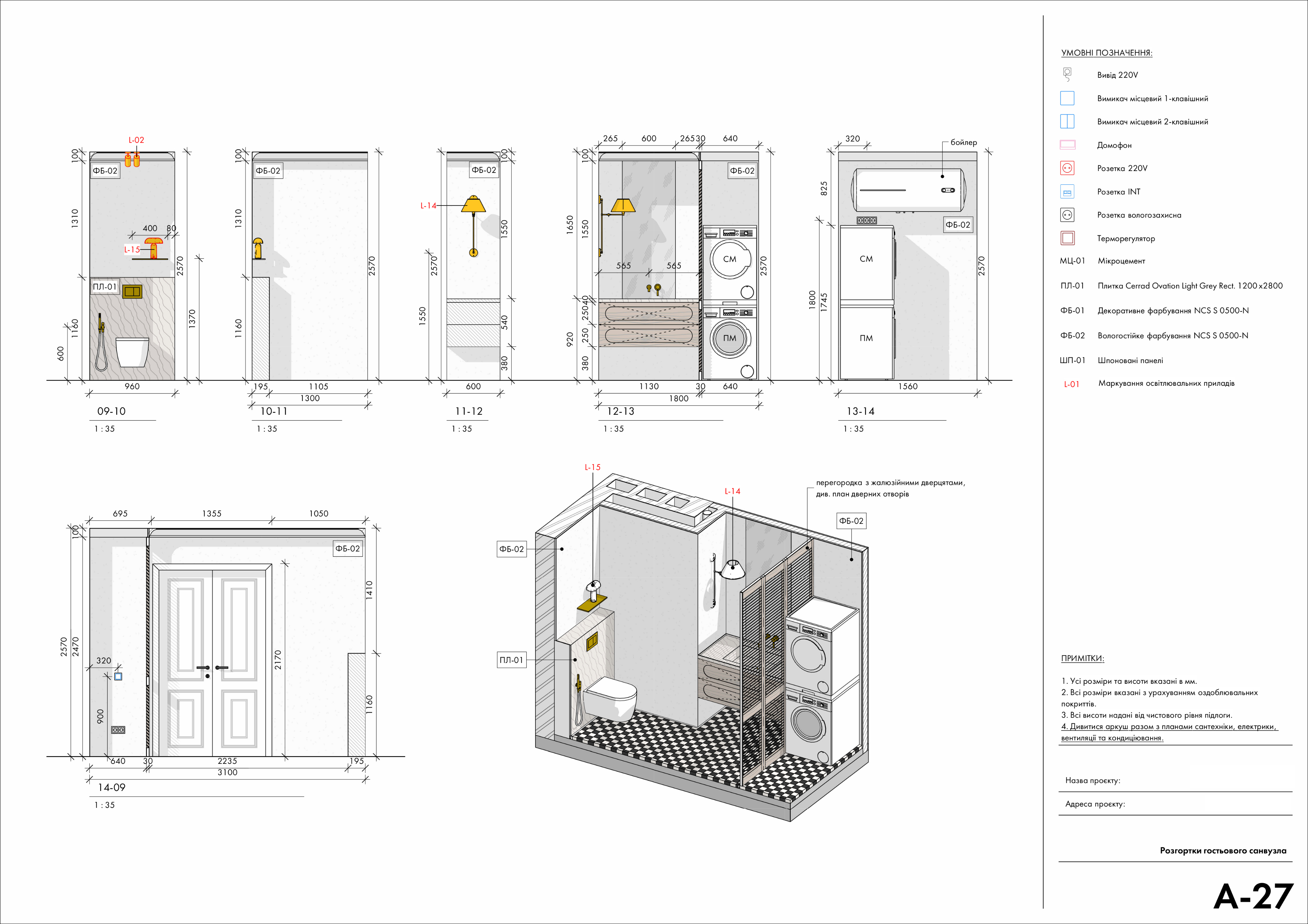 Оформимо всі робочі креслення, які потрібні для проєкту інтер’єру: плани, розгортки, вузли тощо.